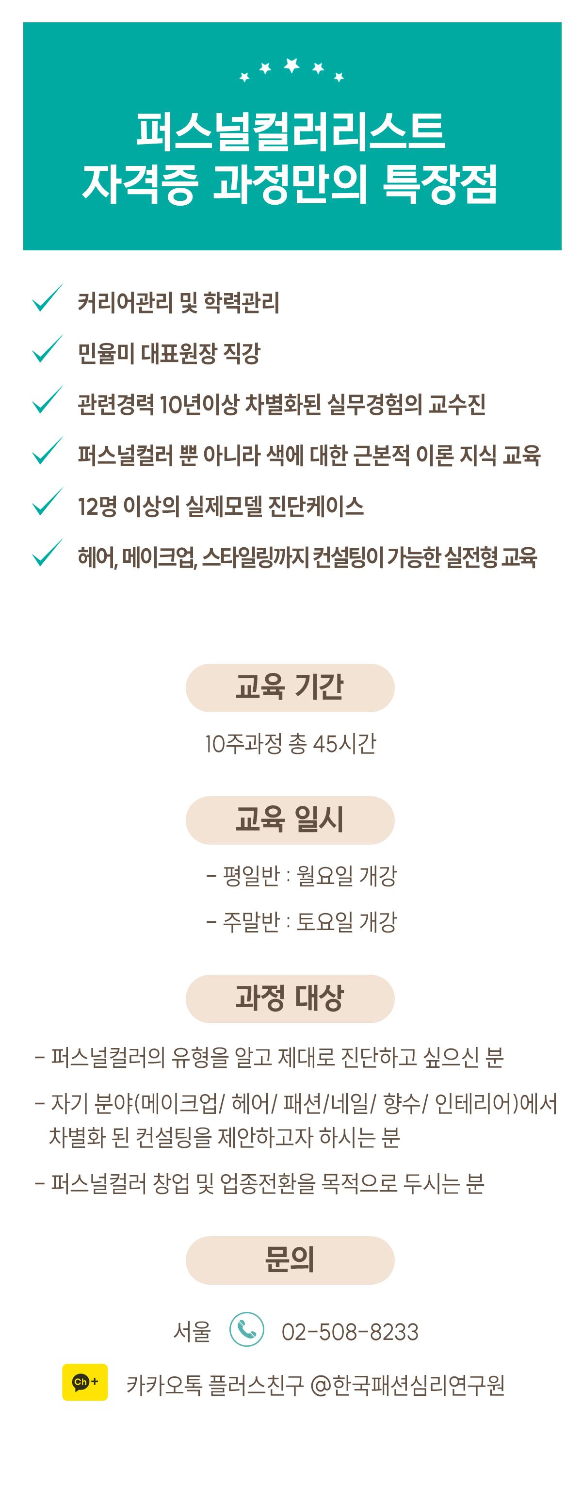 퍼스널컬러리스트 전문가과정 커리큘럼